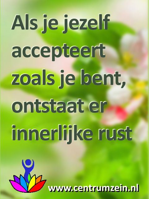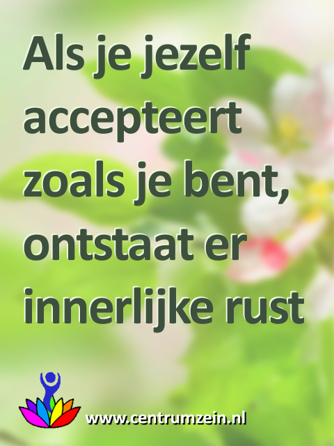 Als je jezelf accepteert zoals je bent, ontstaat er innerlijke rust. Je hoeft jezelf niets meer te bewijzen. Je bent goed zoals je bent.